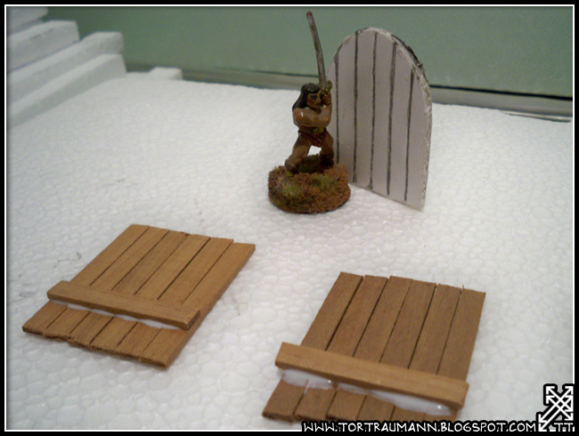 El huerto se pinta con color marrón oscuro, a base de pinceles secos sucesivamente más claros hasta obtener el tono que te guste. En las zonas de irrigación aplica un verde y aplica de igual manera pinceles secos sucesivos de verde más claro. Iguala todo el terreno con un pincel seco amarillo muy poco cargado. Las vallas se pintan con un color base de marrón oscuro y luego sucesivos pinceles secos de color marrón más claro. Puedes envejecer la valla con un pincel seco de amarillo o reverdecerla con un pincel seco verde. Como en el pintado de miniaturas, en los pinceles secos, carga poco el pincel y haz las pinceladas con delicadeza, de manera que resalte la textura.
